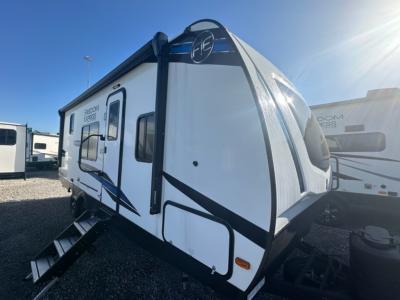 Each model is constructed with vacuum bonded walls with durable Azdel Composite, Dicor Tufflex PVC roofing, and a 3/4 gel coated fiberglass cap with an automotive glass windshield. The 81" interior height will provide more standing room, and the wear-resistant vinyl flooring is ultra durable. Head outside to find a power awning with an LED light strip, a pet leash/bottle opener, a power tongue jack, plus many more convenient amenities.