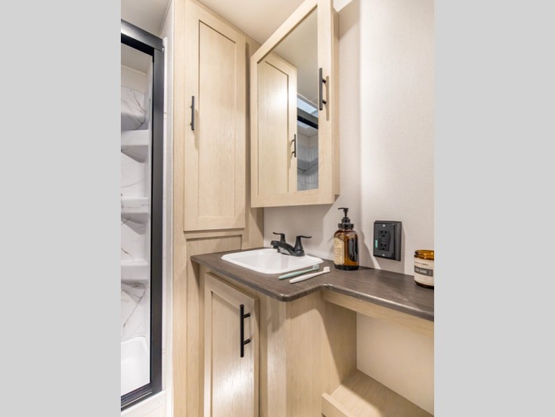 Sleeps 3 Slides 1 Length 24 ft 2 in Ext Width 8 ft Ext Height 11 ft 3 in Hitch Weight 455 lbs GVWR 6350 lbs Dry Weight 4417 lbs Cargo Capacity 1933 lbs Fresh Water Capacity 42 gals Grey Water Capacity 36 gals Black Water Capacity 36 gals Available Beds RV Queen Refrigerator Size 10 cu ft Cooktop Burners 3 Shower Size 24" x 40" Number of Awnings 1 LP Tank Capacity 20 lbs Water Heater Type Tankless AC BTU 13500 btu Axle Count 2 Number of LP Tanks 2 Shower Type Standard Solar Wattage 200 watts Similar Floorplans