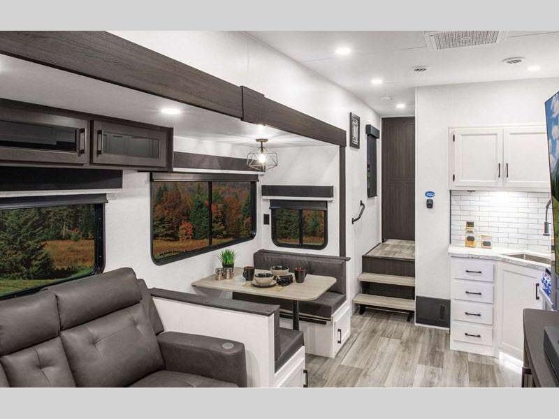 Both the Travel Trailer and Fifth Wheel deliver the same Venture RV quality and comfort. Built with Azdel laminated sidewalls, an NXG Huck bolt frame, and the Weather Shield Package, they’re designed to come with you on your adventures when you want to get away! Inside, enjoy a modern farmhouse design with hand glazed cabinets, Beauflor flooring, and a Serta memory foam mattress. Entertainment and convenience are no issue with a Smart TV with sing arm, JBL sound bar and flip Bluetooth speaker, WiFi prep, and a 200W solar panel. Outside, features like LED power awnings, slam-latch baggage doors with magnetic catches, and a friction-hinge entry door make every trip effortless and enjoyable.