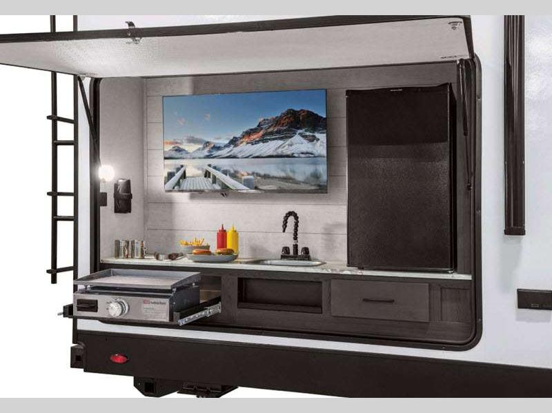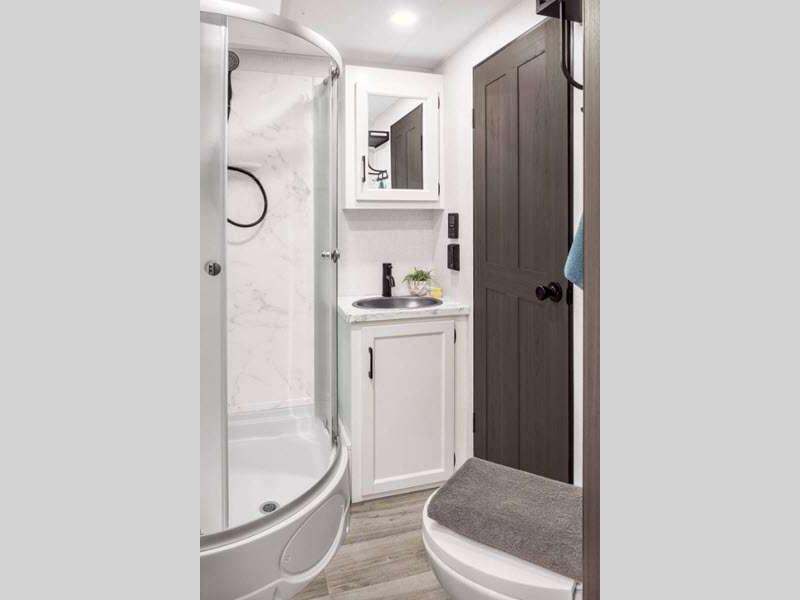 Both the Travel Trailer and Fifth Wheel deliver the same Venture RV quality and comfort. Built with Azdel laminated sidewalls, an NXG Huck bolt frame, and the Weather Shield Package, they’re designed to come with you on your adventures when you want to get away!  Inside, enjoy a modern farmhouse design with hand glazed cabinets, Beauflor flooring, and a Serta memory foam mattress. Entertainment and convenience are no issue with a Smart TV with sing arm, JBL sound bar and flip Bluetooth speaker, WiFi prep, and a 200W solar panel. Outside, features like LED power awnings, slam-latch baggage doors with magnetic catches, and a friction-hinge entry door make every trip effortless and enjoyable.